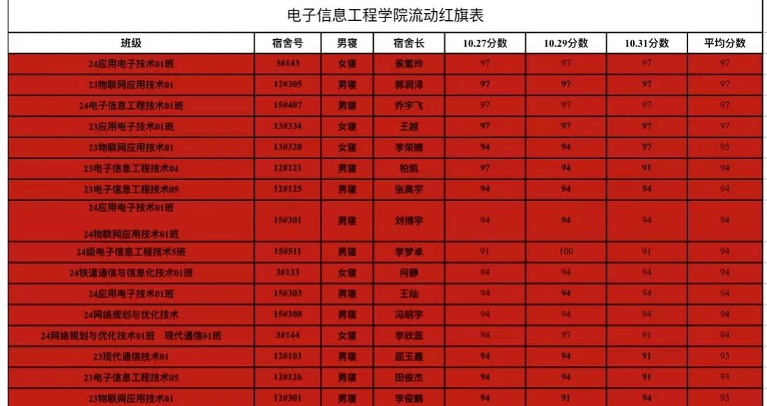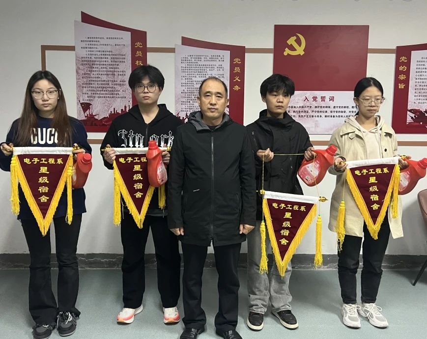 為不斷進(jìn)一步增強(qiáng)電子工程學(xué)院學(xué)子們的衛(wèi)生意識(shí)和文明素養(yǎng),展現(xiàn)良好的校園形象,電子工程學(xué)院于2024年11月4日開展了“流動(dòng)紅旗”評(píng)比活動(dòng)。其中黨總支書記王正偉、學(xué)生支部書記李玲玲對(duì)上周優(yōu)秀宿舍頒發(fā)流動(dòng)紅旗,各班級(jí)班長(zhǎng)、團(tuán)支書、學(xué)生會(huì)干部參與本次頒發(fā)儀式。