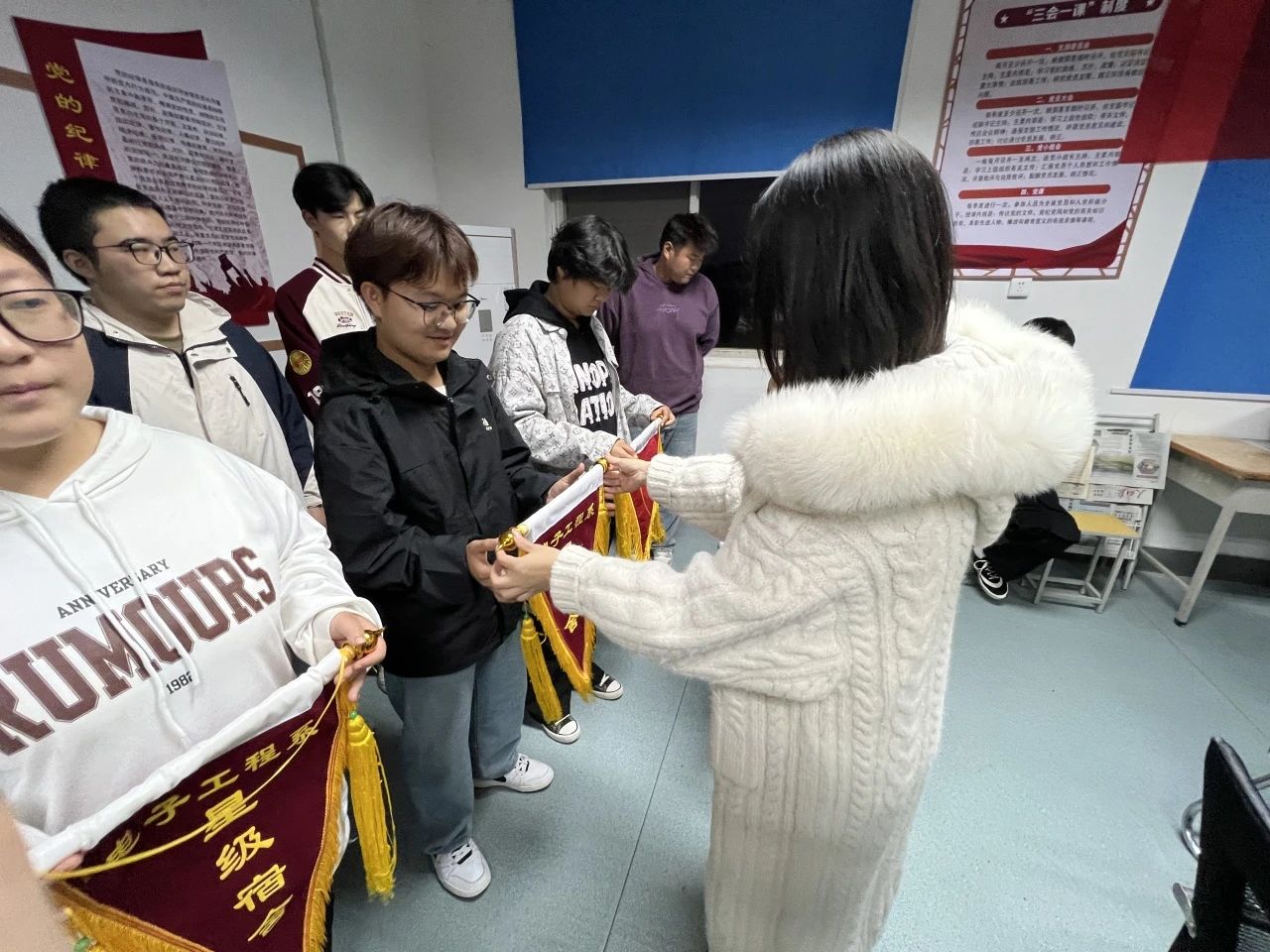 為了進(jìn)一步規(guī)范學(xué)生日常行為,培養(yǎng)良好的生活習(xí)慣,促進(jìn)班集體整體素質(zhì)和紀(jì)律性的提升、增強(qiáng)凝聚力。學(xué)院對各個班級進(jìn)行檢查,并于2024年10月28日下午開展了流動紅旗頒發(fā)儀式,其中黨總支書記王正偉、學(xué)生黨支部書記李玲玲對上周優(yōu)秀宿舍頒發(fā)流動紅旗,各班級班長、團(tuán)支書、學(xué)生會干部參與本次頒發(fā)儀式。