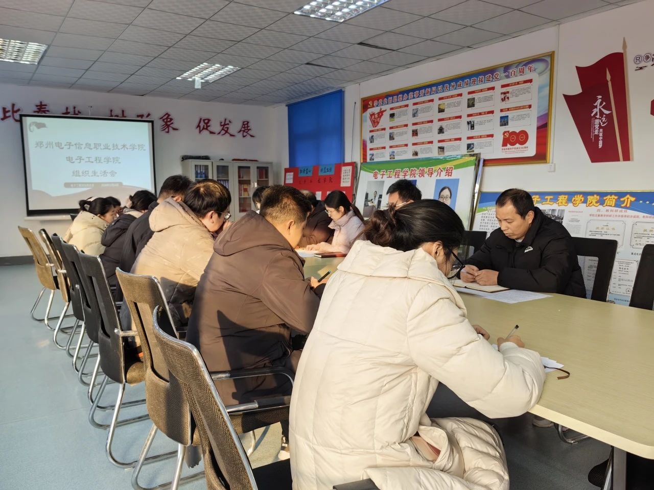2024年12月24日下午15:30,電子工程學院在綜合辦公室606成功舉辦了以“深入開展黨員批評與自我批評,促進黨員自我提升與黨組織建設”為主題的組織生活會。電子工程學院全體黨員及預備黨員教師參加了此次會議。
