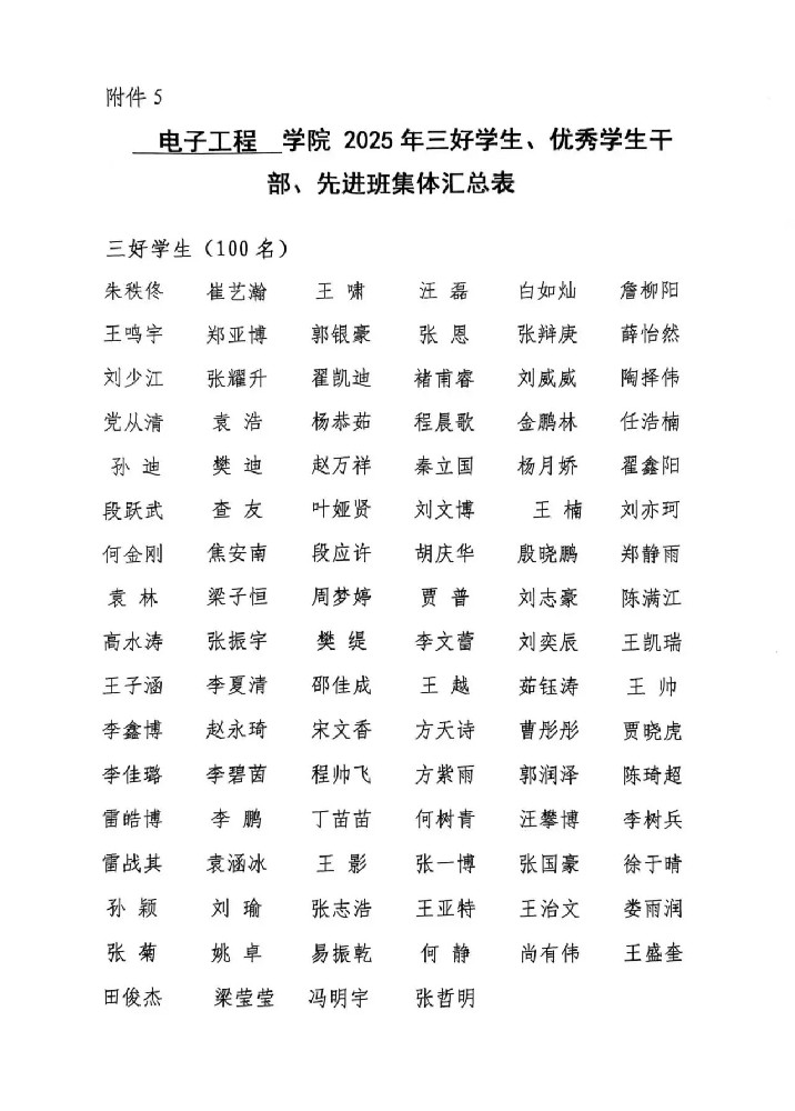 電子工程學院 | 2025年三好學生、優(yōu)秀學生干部、先進班集體和校獎學金學生名單公示