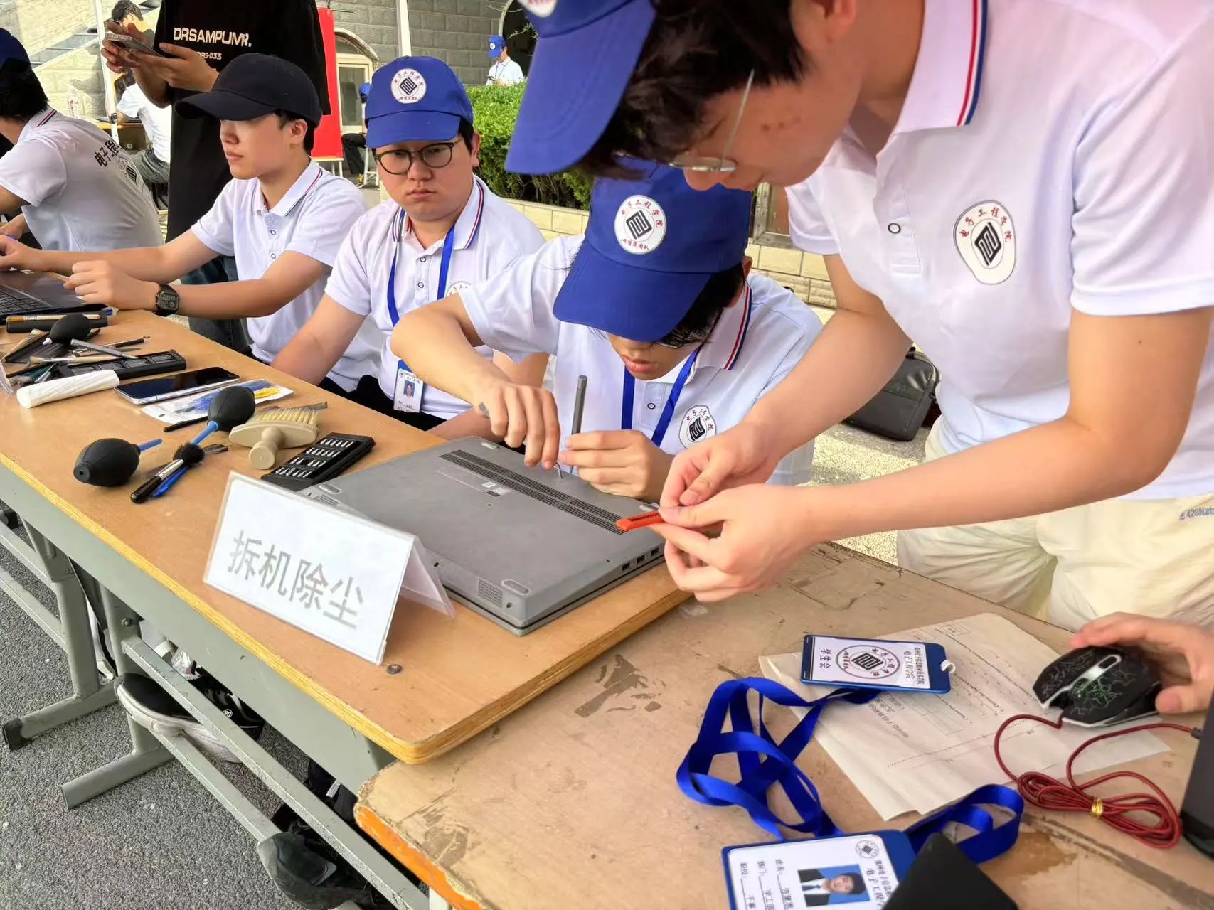 為進(jìn)一步探索“黨建+”融合發(fā)展的實(shí)踐路徑,賦能“一院一品”特色品牌建設(shè),電子工程學(xué)院以黨建引領(lǐng)專業(yè)建設(shè),于2025年4月17日辦公樓大前如期開展“e網(wǎng)情深、e心向黨"義修電腦,并且此次開展拍攝證件照的同時還舉行了ps修圖制作小比賽,在突顯專業(yè)特色,聚焦學(xué)生需求的同時也幫助師生解決電腦問題。