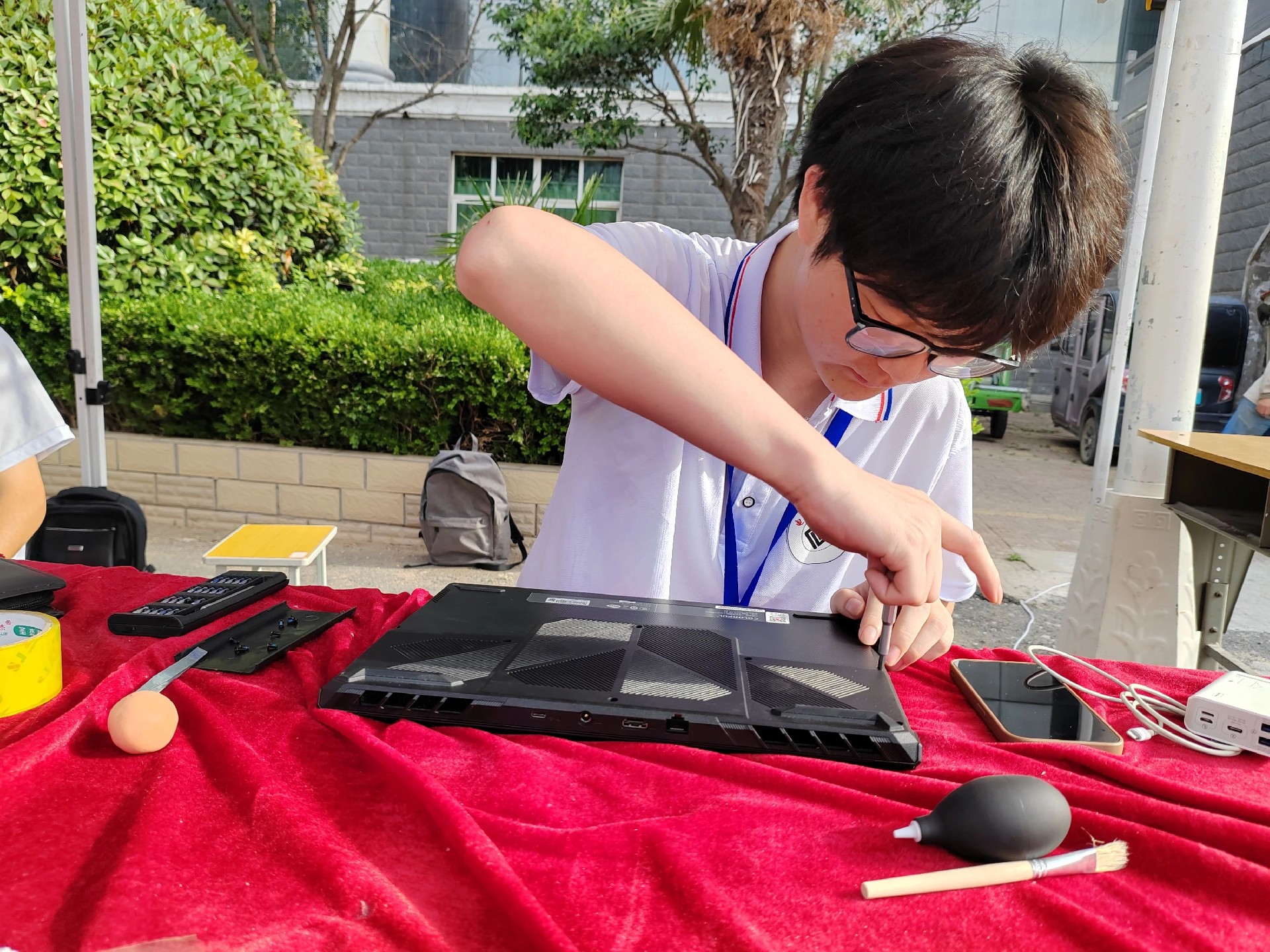 活動現(xiàn)場,由學(xué)院學(xué)工部組成的志愿者團隊早早做好準備,以飽滿的熱情迎接每一位前來尋求幫助的師生。他們分工明確,有的負責(zé)接待登記,有的專注于故障檢測,有的則進行維修操作。面對師生們電腦出現(xiàn)的各種問題,如系統(tǒng)崩潰、硬件損壞、軟件故障等,志愿者們憑借扎實的專業(yè)知識和豐富的實踐經(jīng)驗,迅速進行診斷和修復(fù)。