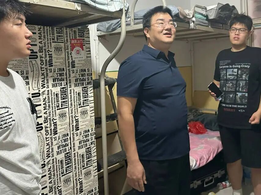 在走訪過程中,陳校長親切地問候入學新生學生,與新生進行面對面的交流,了解他們的學習情況、生活需求等方面的信息,同時為同學們目前生活中遇到的問題,進行答疑解惑、解決困難,并且提出寶貴建議,提醒同學們在平常生活中務(wù)必注意財產(chǎn)安全、用電安全和人身安全,謹防詐騙。同時向新生介紹了學校的規(guī)章制度、校園文化、教育資源等方面的信息,幫助他們更好地融入校園生活。