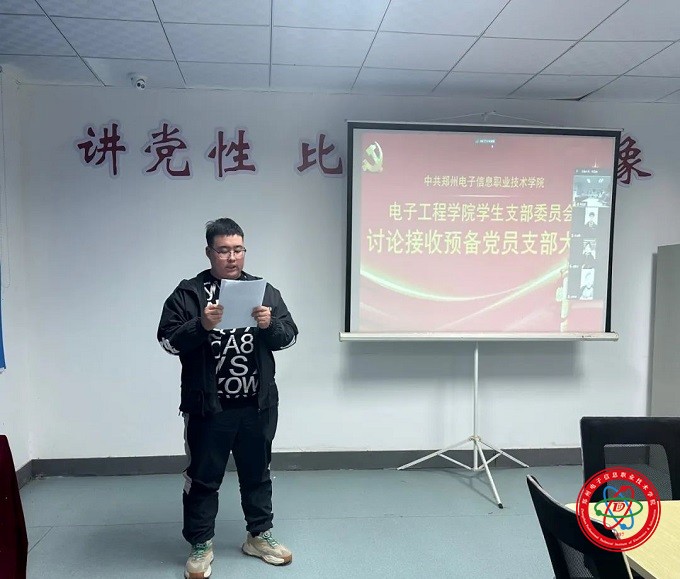2023年12月5日下午,我院在辦公樓606會議室召開以“電子工程學院學生黨支部接收預(yù)備黨員大會”為主題會議。黨總支書記張志愿、學生黨支部書記李玲玲同志以及其余黨員同志、4名發(fā)展對象現(xiàn)場參會、3名發(fā)展對象通過第二會場線上視頻參加會議。