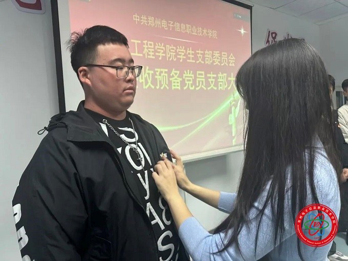 會議最后,預(yù)備黨員列隊整齊,學生黨支部書記李玲玲為在場的預(yù)備黨員佩戴上黨徽并希望他們:身為黨員要經(jīng)得起考驗,擔當起自己責任,樹立先鋒模范作用,積極參與到實踐中去,投身于為人民服務(wù)中去;時刻堅定理想信念,保持謙虛謹慎,不驕不躁。