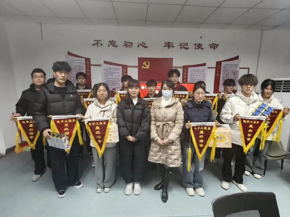 為不斷進(jìn)一步增強(qiáng)電子工程學(xué)院學(xué)子們的衛(wèi)生意識(shí)和文明素養(yǎng),展現(xiàn)良好的校園形象,電子工程學(xué)院于2025年11月17日開展了“流動(dòng)紅旗”評(píng)比活動(dòng)。其中黨總支書記李玲玲、輔導(dǎo)員代表梁哲老師對(duì)優(yōu)秀宿舍頒發(fā)流動(dòng)紅旗,各班級(jí)班長(zhǎng)、團(tuán)支書、學(xué)院生活部參與本次頒發(fā)儀式。