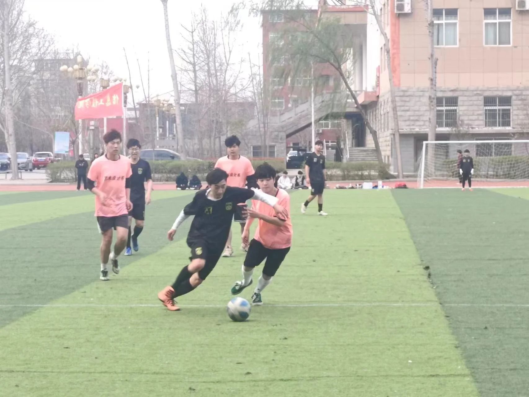 息工程學院3月27日足球賽首場對決在鄭電校園操場展開,本場比賽由信息工程學院代表隊和藝術學院代表隊進行對決。