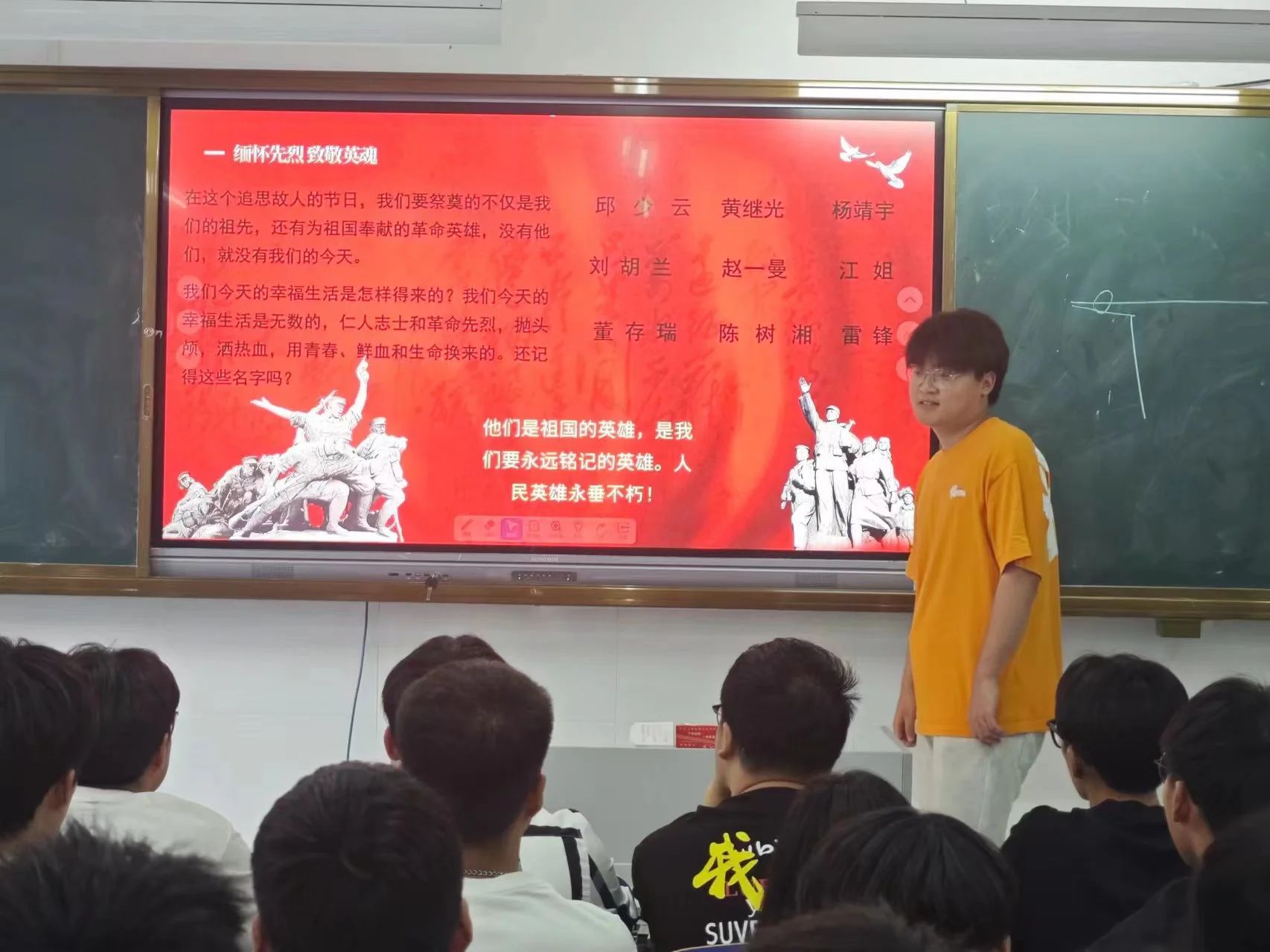 為深入弘揚愛國主義精神,增強政治責(zé)任感和歷史使命感,信息工程學(xué)院學(xué)生第一黨支部于2024年4月17日在5號樓105教室組織開展“緬懷先烈,致敬英魂”主題黨日活動。本次活動由信息工程學(xué)院學(xué)生第一黨支部書記王單單主持。