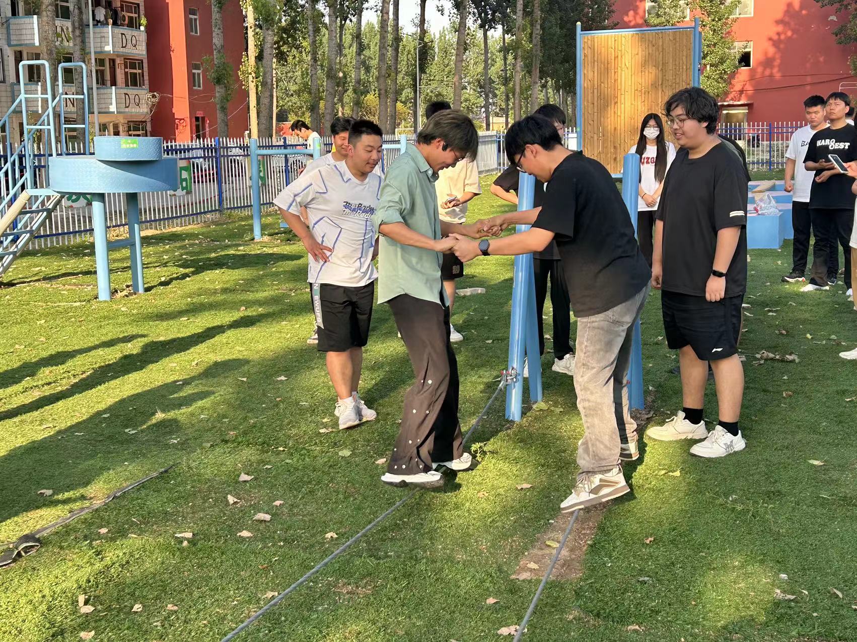 通過“地面相依、禮讓通行、信任背摔、模擬電網(wǎng)、心有千千結(jié)、瞎子背瘸子”等一系列趣味活動,旨在通過互動和體驗的方式,讓同學(xué)們在游戲中學(xué)習(xí),增強(qiáng)心理調(diào)適能力,提高情緒管理能力。讓大家在輕松愉快的氛圍中深入了解心理健康的重要性,學(xué)會正確面對心理問題,積極應(yīng)對生活中的壓力與挑戰(zhàn)。