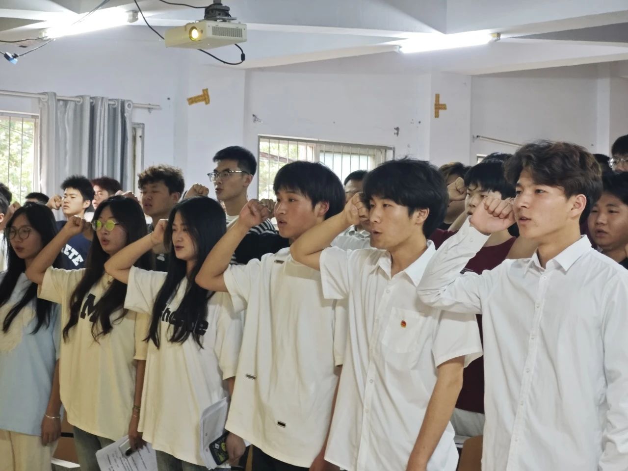 最后,入團儀式在中國共青團團歌《光榮啊,中國共青團》的合唱聲中圓滿結束。