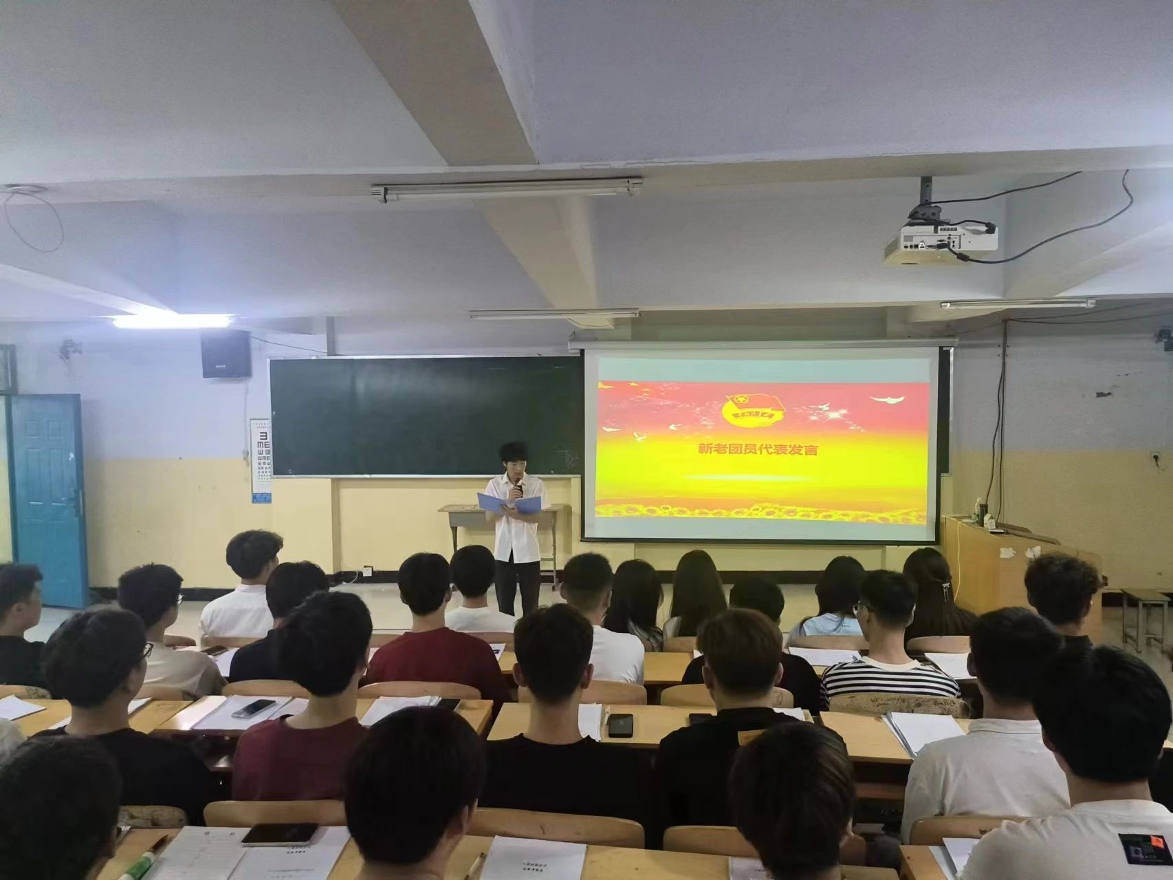 會議進行第三項,由新團員代表夏俊和優(yōu)秀團員代表姚德寶同學進行發(fā)言。他們表示將時刻牢記自己的團員身份,以更高的標準要求自己,努力學習,積極奉獻,為實現(xiàn)中華民族偉大復興貢獻青春力量,在新時代廣闊天地中施展抱負,頑強拼搏,努力成長為堪當民族復興重任的時代青年。