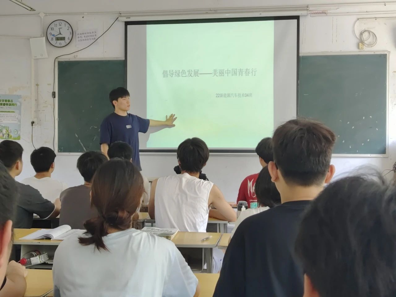 團課伊始,團支書們首先向班級同學(xué)闡述了綠色發(fā)展的重要性,并且通過介紹新時代綠色發(fā)展的價值意蘊,讓同學(xué)們領(lǐng)悟到只有貫徹綠色發(fā)展理念,堅持資源節(jié)約、生態(tài)保護和環(huán)境治理并行并重,才能實現(xiàn)永續(xù)發(fā)展,促進人的全面發(fā)展和社會全面進步。激發(fā)了作為新時代青年,我們肩負著建設(shè)美麗中國的重任。
