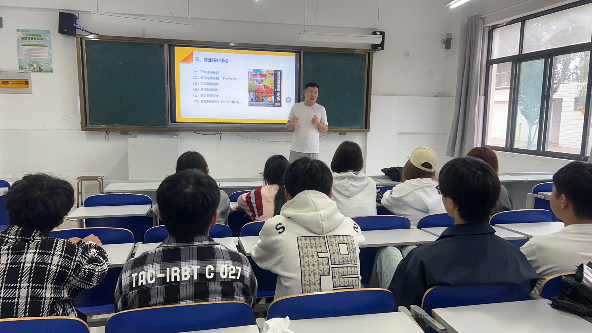 專業(yè)課教師許瑞豐、王茹、李彥鵬,針對不同專業(yè),從新版人才培養(yǎng)方案切入,從課程體系、行業(yè)趨勢、職業(yè)能力三個維度展開介紹。許瑞豐老師鼓勵同學們要打牢繪畫基礎(chǔ)、勇于創(chuàng)新,不斷在實踐中提升自己的審美修養(yǎng),在藝術(shù)與技術(shù)的融合中探索個人風格,以此來追求藝術(shù)創(chuàng)作的上限。李彥鵬老師梳理各專業(yè)發(fā)展歷程,從環(huán)藝的 “綠色 + 智慧” 轉(zhuǎn)型、數(shù)媒的 “AIGC + 元宇宙” 爆發(fā),到廣告的 “動態(tài) + 數(shù)據(jù)” 驅(qū)動,用產(chǎn)業(yè)規(guī)模、崗位缺口等數(shù)據(jù)具象化行業(yè)現(xiàn)狀。同時,通過課程與崗位技能對應(yīng)表、實踐項目就業(yè)案例,清晰拆解 “學習重點 — 能力輸出 — 就業(yè)適配” 鏈路,還為新生規(guī)劃三年成長路徑,強調(diào)工具認證、項目實戰(zhàn)的重要性。切實幫助新生破解專業(yè)認知困惑,明確學習目標。老師們還與新生進行了互動交流,解答了他們關(guān)于專業(yè)學習的疑問和困惑。新生們紛紛表示,通過這次專業(yè)介紹,他們對未來的學習充滿了信心和期待,將以飽滿的熱情投入到專業(yè)學習中去。
