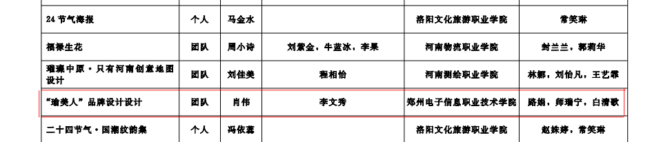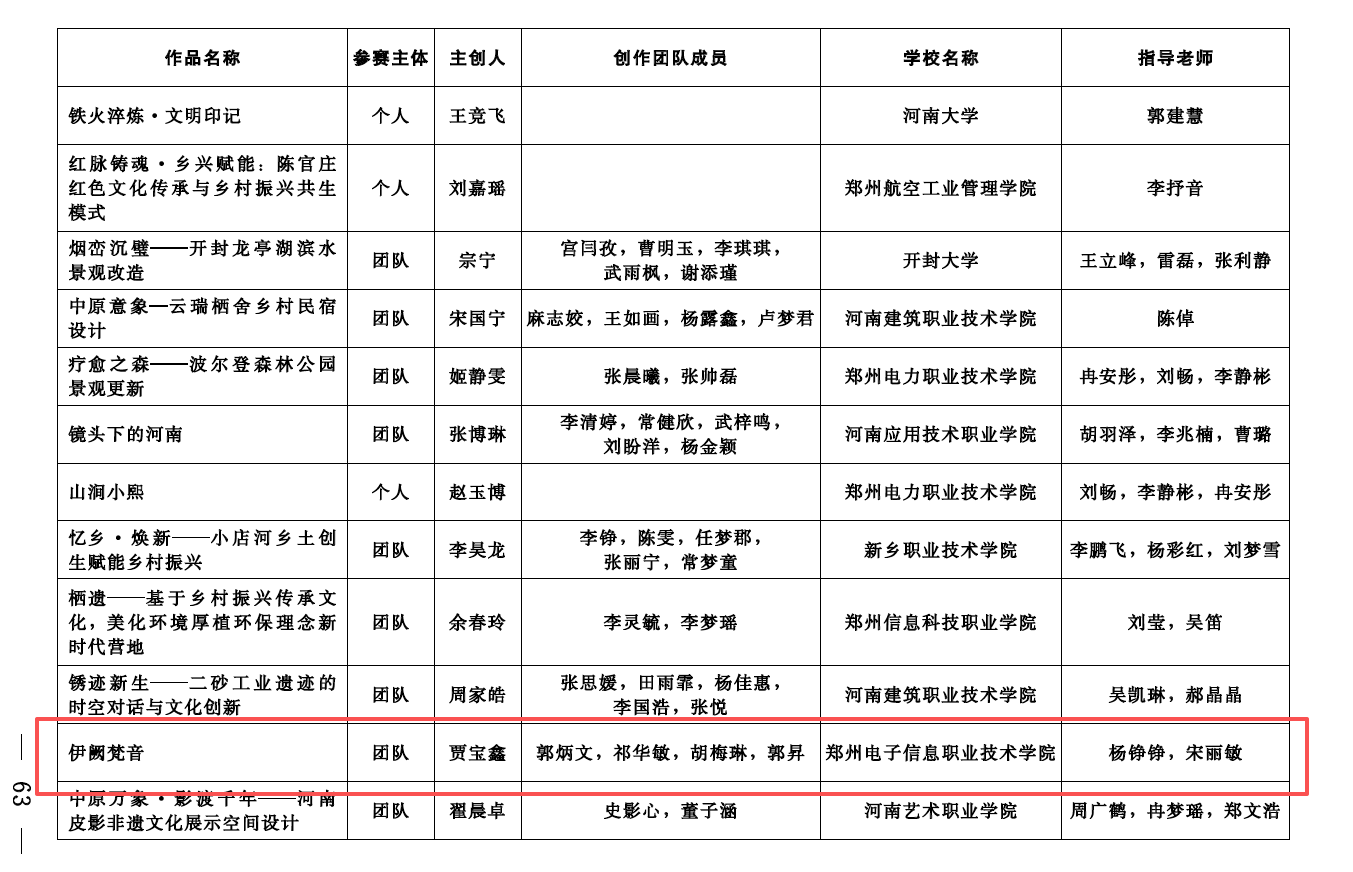 近日,備受矚目的 2025 河南省文化創(chuàng)意大賽獲獎(jiǎng)名單終于正式揭曉。該賽事由多部門聯(lián)合主辦,以挖掘河南文化內(nèi)涵、助力文創(chuàng)產(chǎn)業(yè)發(fā)展為核心,為河南文化傳播添新動(dòng)能。藝術(shù)學(xué)院在此次大賽中表現(xiàn)亮眼,藝術(shù)學(xué)院楊錚錚、宋麗敏、路娟、白清歌四位教師憑借扎實(shí)的文創(chuàng)教學(xué)功底與創(chuàng)新實(shí)踐能力,斬獲1項(xiàng)銀獎(jiǎng),3項(xiàng)銅獎(jiǎng):環(huán)藝設(shè)計(jì)作品《伊闕梵音》《八卦小策?新中式民宿設(shè)計(jì)》《時(shí)蘭》,獲得1項(xiàng)銀獎(jiǎng)2項(xiàng)銅獎(jiǎng),平面設(shè)計(jì)作品《瑜美人》獲銅獎(jiǎng)。