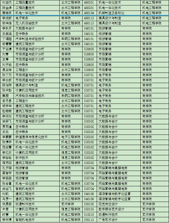 具體轉(zhuǎn)專業(yè)名單公示如下: