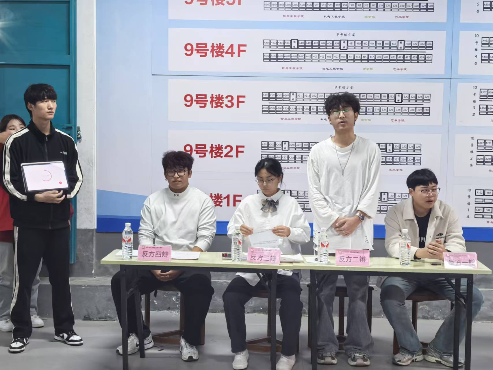 本次辯論賽活動共有開篇立論、一對一攻辯、自由辯論、總結(jié)陳詞四個環(huán)節(jié)。學(xué)生社區(qū)辯論賽現(xiàn)場氣氛緊張而熱烈,辯手們個個神采奕奕,眼神中閃爍著堅定與智慧。他們或站或坐,身姿挺拔,仿佛每一根神經(jīng)都緊繃著,隨時準(zhǔn)備迎接對方的挑戰(zhàn)。