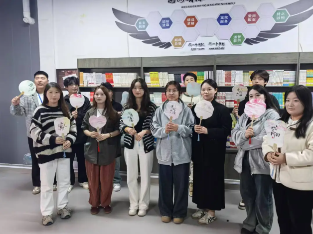 各學(xué)院團(tuán)總支書記也在百忙之中親臨現(xiàn)場與同學(xué)們展開互動并參與制作。她們到來更加激發(fā)了學(xué)生們的熱情,大家積極參與,共同探討漆扇制作技巧,不僅營造了濃厚的文化氛圍,還促進(jìn)了師生間的互動交流,對傳承傳統(tǒng)文化和創(chuàng)新教育具有重要意義。