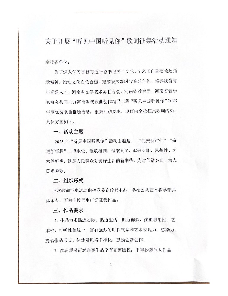 關(guān)于開展“聽見中國聽見你”歌詞征集活動(dòng)的通知