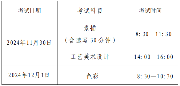 美術(shù)類專業(yè)考試與普通高招藝術(shù)類專業(yè)省統(tǒng)考統(tǒng)一安排,考試時(shí)間安排如下: