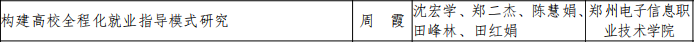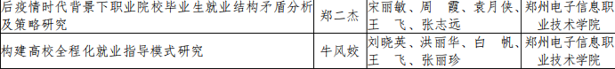 近日,由我校教師鄭二杰主持的課題《后疫情時代背景下職業(yè)院校畢業(yè)生就業(yè)結(jié)構(gòu)矛盾分析及策略研究》、牛風姣主持的課題《構(gòu)建高校全程化就業(yè)指導(dǎo)模式研究》、周霞主持的課題《構(gòu)建高校全程化就業(yè)指導(dǎo)模式研究》經(jīng)河南省教育廳辦公室材料初審、研究報告復(fù)制比抽檢、網(wǎng)絡(luò)評審、現(xiàn)場評議,順利獲批結(jié)項。